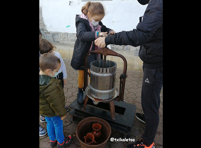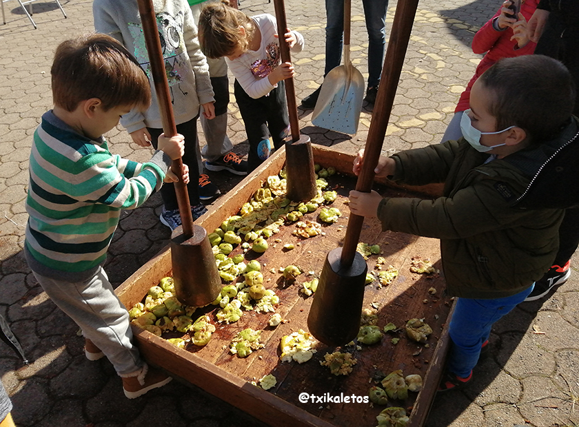 Urrikoko asteburuetan, Sagardoetxeak sagar muztioa egiteko aukera eskaintzen die familiei. Haur nahiz helduek sagarrak kizkiarekin bildu, pisoiekin txikitu, prentsatu eta egindako sagar muztioa dastatzeko aukera izango dute. Gainera, familia bakoitzak sagar muztio botila bat etxera eramaten du, txikiek egindako etiketa batekin. Esperientzia osoa ordu bateko iraupena du, baina bizi garen egoera dela eta, guk nahi genuena baino arinago egin behar izan genuen tailerra eta txikiek parte hartze gutxi izan zuten muztioaren elaborazioan. Hala ere oso plan polita da familian egiteko. Partehartzeko aldez aurretik egin behar da erreserba www.sagardoarenlurraldea.eus web orrialdean.